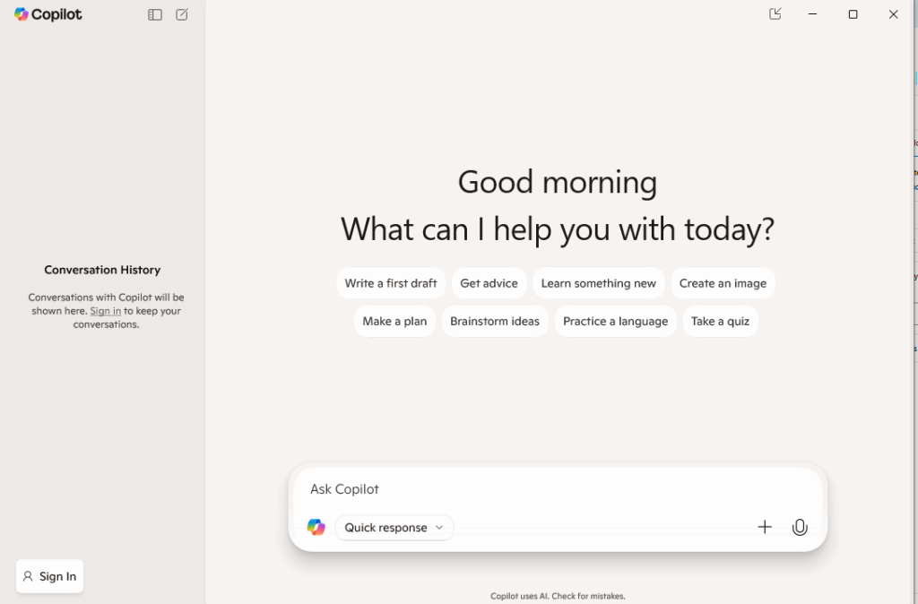 Windows 11 fait évoluer son expérience de support avec des fonctionnalités basées sur l'IA telles que Copilotequi peut comprendre des requêtes en langage naturel telles que « comment contrôler mon PC par la voix » ou « le pointeur de ma souris est trop petit » et recommander des étapes précises ou même effectuer des modifications en votre nom avec votre permission. Cela rend l'application Get Help de plus en plus proactive et interactive, réduisant ainsi le temps et les efforts nécessaires pour résoudre les problèmes. Pour utiliser Microsoft Copilot, cliquez simplement sur le Icône de recherche dans la barre des tâches et tapez Copilotepuis sélectionnez le Copilote application à partir des résultats de recherche.