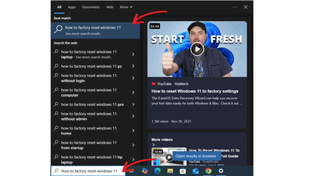 2. Vous pouvez également ouvrir le Menu Démarrer et commencez à taper votre requête directement : Windows 11 passera automatiquement en mode de recherche.