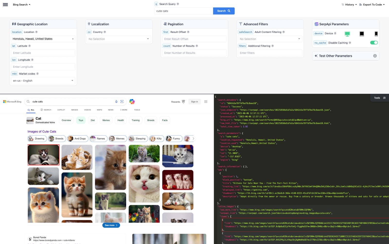 Beaucoup plus est disponible sur ces résultats organiques lorsque vous utilisez notre API, alors n'oubliez pas de consulter la page de documentation de l'API Bing Organic Results.