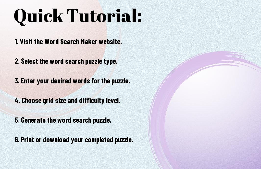 Maintenant, vous pouvez facilement créer une recherche de mots personnalisée qui est parfaite pour vos besoins dans Wordsearchmaker.net. Suivez ces étapes simples pour vous assurer que votre recherche de mots est engageante et amusante pour tout le monde.