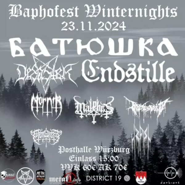 L'année 2017 s'est déroulée dans un dunklen Kellergewölbe im Herzen Würzburgs der Grundstein gelegt, the hiesige Black-Metal-Szene neu zu beleben et de plus grandes Veranstaltungen voran zu treiben. Et ainsi Wurde das Baphofest ins Leben gerufen. Alors que le Clubshow-Reihe sollte der local Underground soutient et gleichzeitig aussi grand, les groupes ultrarégionaux auf die Bühne gebracht werden.