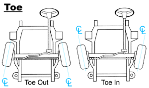 Angle d'orteil – Un terme de géométrie de direction ; voir schéma.