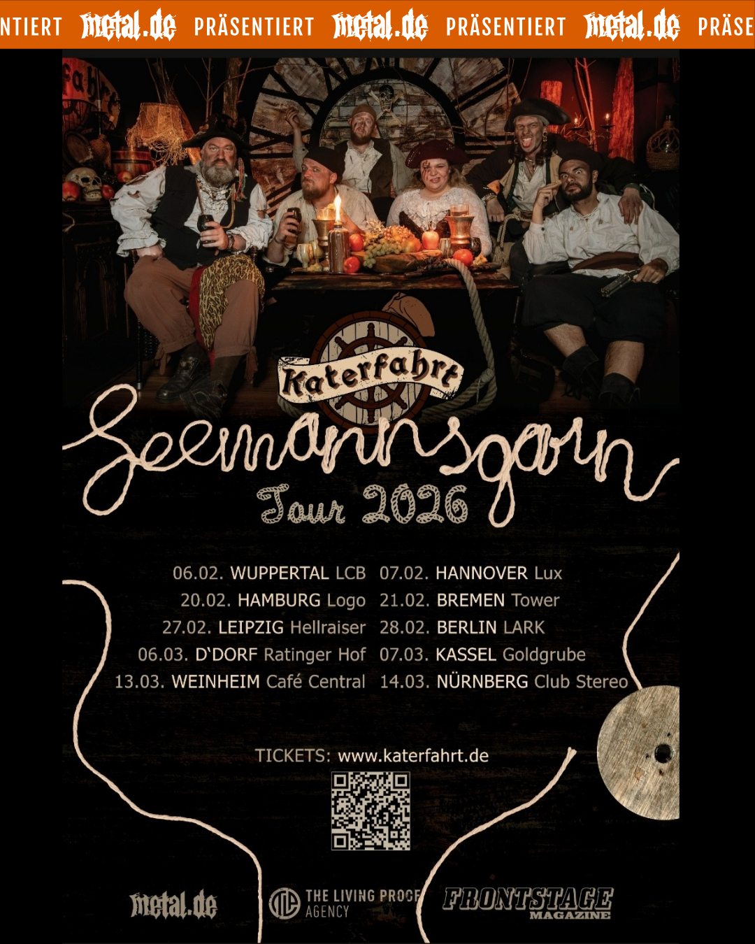KATERFAHRT, un groupe sechsköpfige, avec ses propres textes et mélodies « Spiced Pirate Folk » et le Leute apporte, en 2026 auf Seemannsgarn Tour.