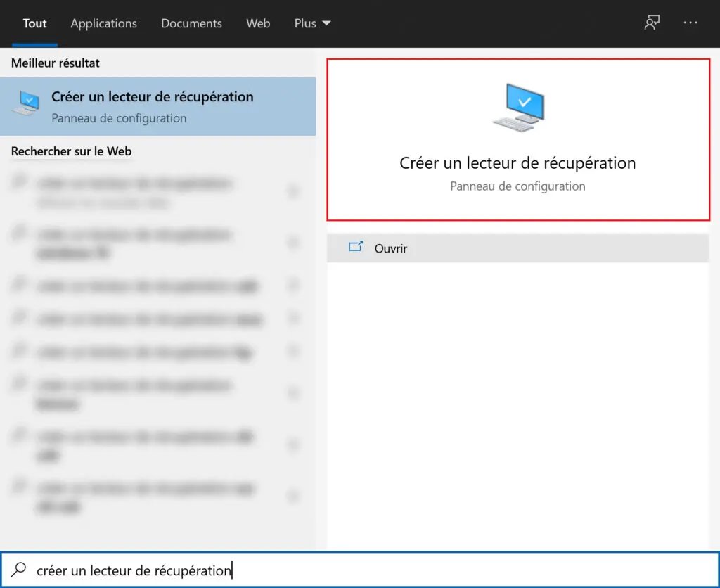 RecoveryDrive.exe - loin le Recherche Windows : « créer un lecteur de récupération »
