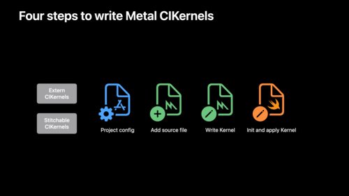 了解将基于 Metal 的自定 Image centrale 内核添加到您的 App 时的步骤和构建规则 , 并了解使用 Metal 拼接函数和动态库功能的好处。